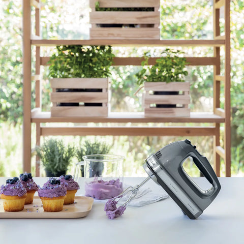 The soft grip handle on the KitchenAid 9-speed hand mixer sits comfortably in your hand, so you can have full control over your movement while mixing.