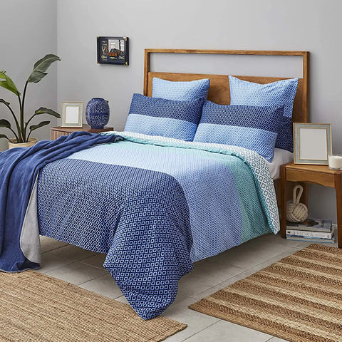 Nautica Home Grace 100% Cotton Duvet Cover Set, Double, 200cmx200cm, Blue Multi