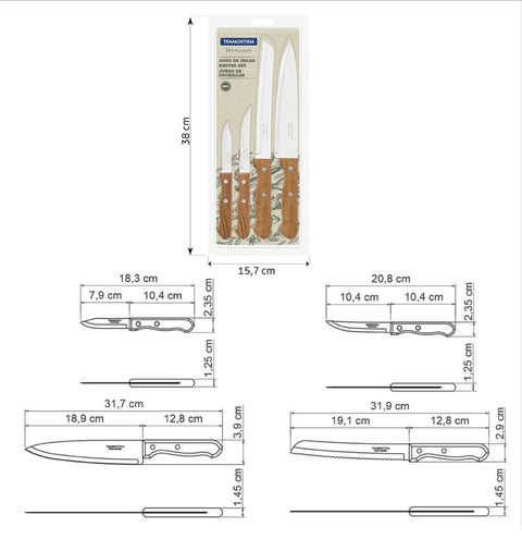 Tramontina 4-Piece Stainless Steel Kitchen Knife Set, Grey