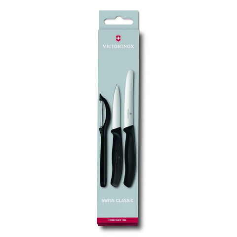 Victorinox Swiss 3 Piece Paring Knife Set with Straight Peeler, Black Silver